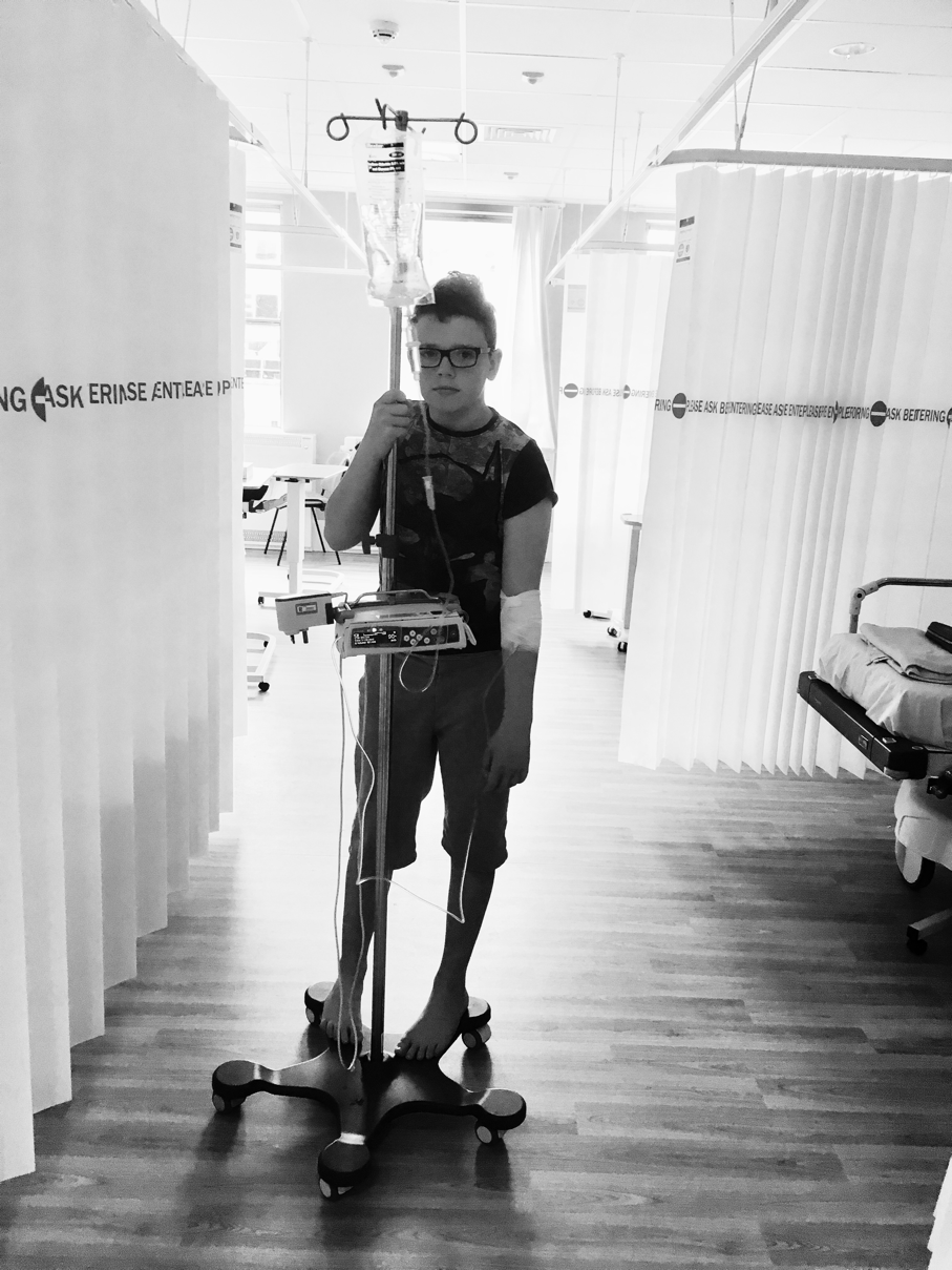 We are home from a quick admission (DIOS related) where everything went pretty OK. We had hoped his tummy problems were somewhat behind us, as he hasn't been admitted for this in over a year now, but hey ho. He has a CT scan this week, and a DEXA scan and CF clinic next week, so it's still pretty full on CF-styley right now. But the main thing is he is feeling much better. Plus he is dropping three medications (which seem to no longer work for him, at least for now, he may just need a rest from them) and gaining just one new one. It's very rare for us to reduce his prescription list. We really need this one to work (the alternatives are a lot more invasive).... It does sometimes feel like we've patched him up, but only for now. Anyway, it's not all bad being in hospital, we always have some fun too. He is the best company! This time, he was hooked up to an IV line all day, which for a change had some pretty sturdy wheels on it, so he skated down to the concourse on its wheels to a series of funny looks (we both find commotion he causes pretty amusing... yes, sick people have fun too!). He loved making a short film of our day, and here are some stills from that. We are feeling hopeful and happy. Have a great day x
